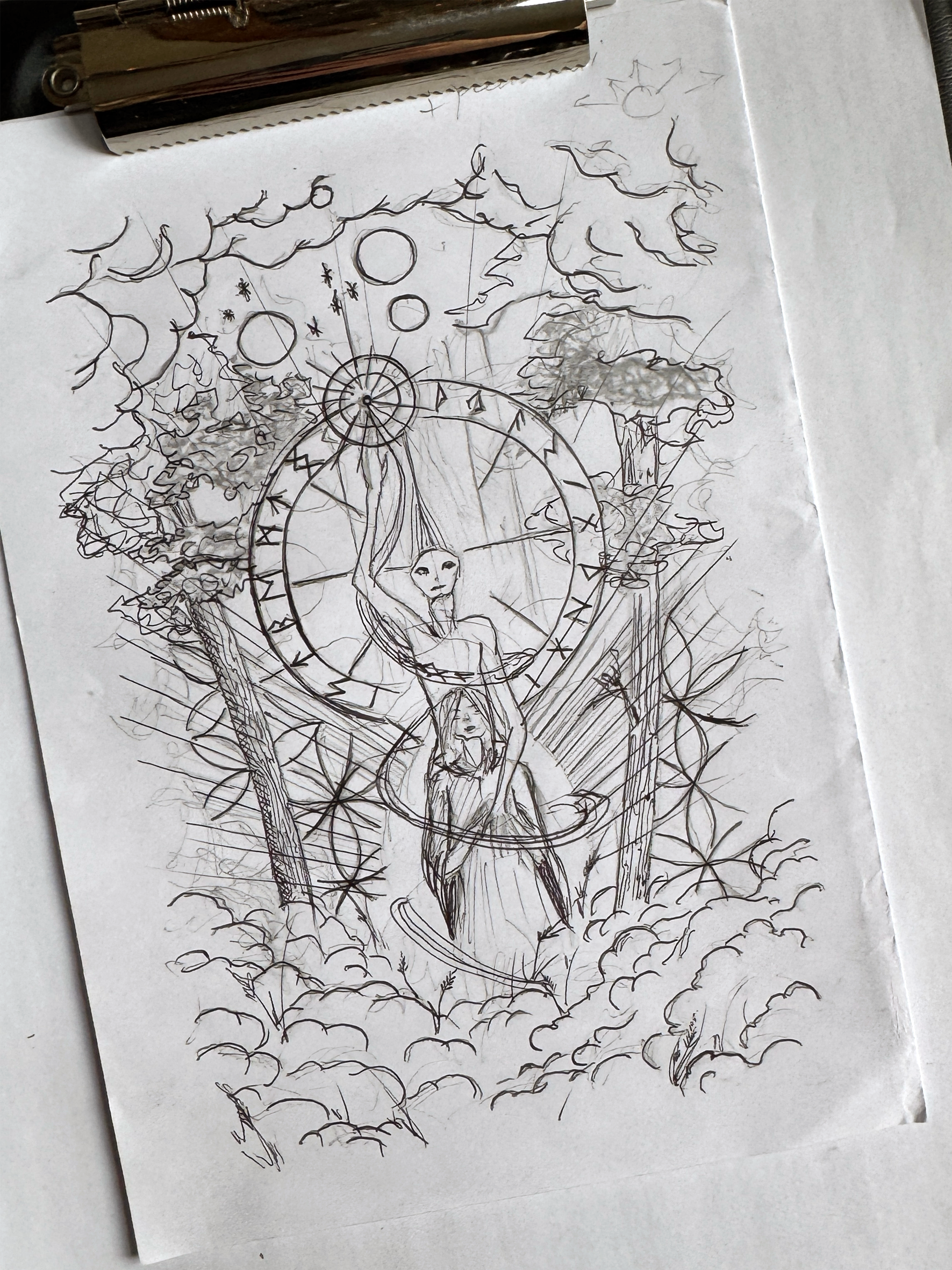 Once we have discussed the vision and concept, the sketching and refinement phase begins. Some ideas arrive quickly, while others need time to mature so I can truly feel and express the full depth of emotion.