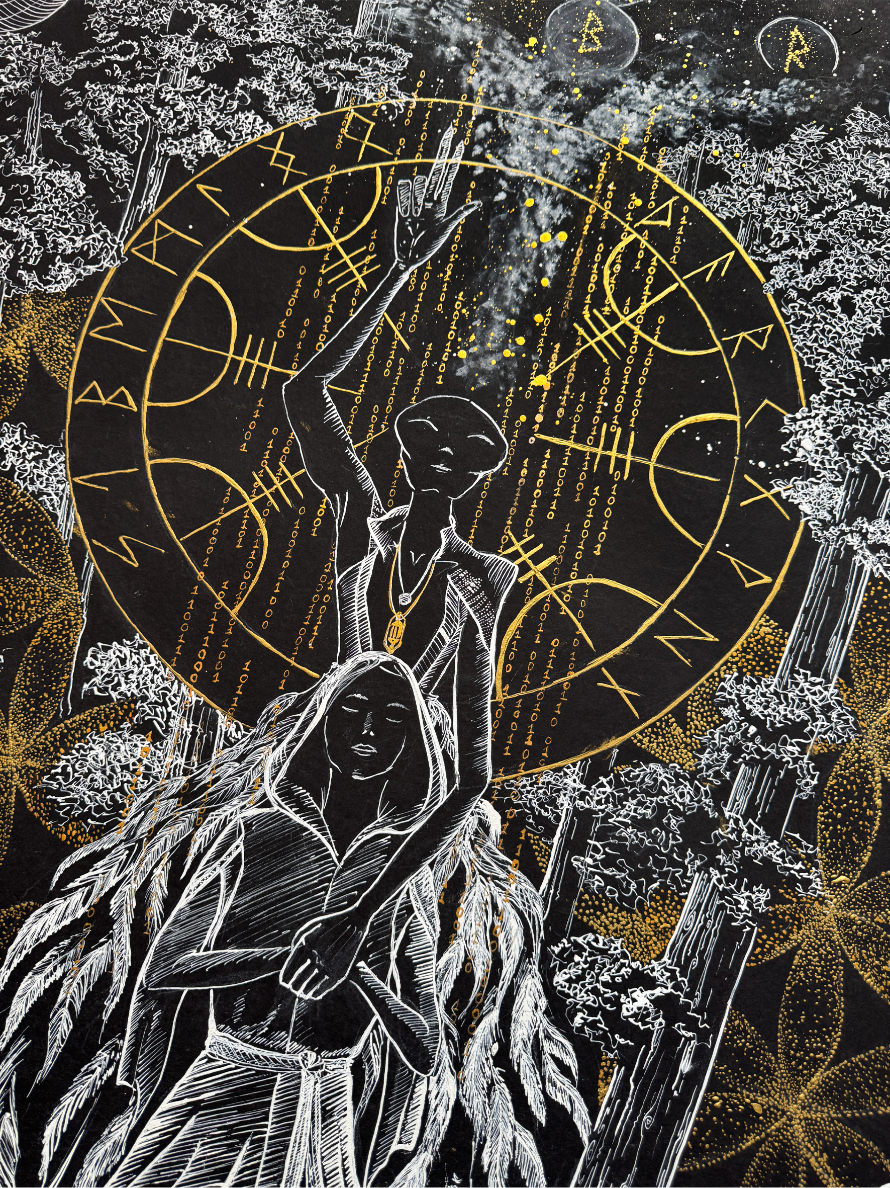 Once the sketch is approved, the true creation begins. The outlines are carefully transferred onto paper. Then, using a calligraphic nib and ink, I gradually fill the darkness with light through delicate lines and dots.